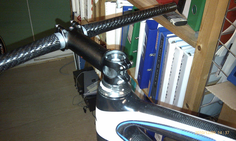 Hva med den stemmen du har der. 12 grader og karbon. Er det racer? Jeg spør selvsagt fordi jeg kanskje da må lete etter et lettvektstem med rize. Og 25.4 mm styre. Ellers er det jo ikke noe vitsi å spare 100 gram på gaffelen..