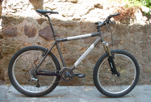 Den ble først levert med 3.15" vandring på gaffelen, men på slutten med 4"/100mm gaffel. Vet ikke om ramma forandra seg noe da den kom med lengre vandring.