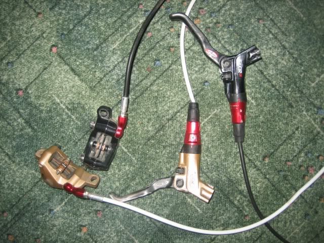 Avid Elixir CR; massevis av bremsekraft med utmerket modulasjon. Bak-bremsen (den svarte) må luftes, ellers er bremsene i 100% funksjonell tilstand.