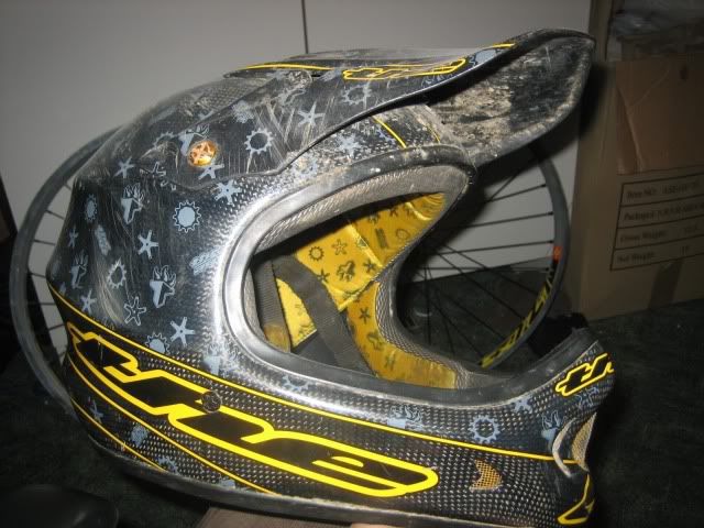 The One Carbon Hjelm; Riper her og der, små chips bak hjelmen. Størrelse er Large, kan kjøpe paddings fra CRC til å passe folk med medium eller small størrelse.