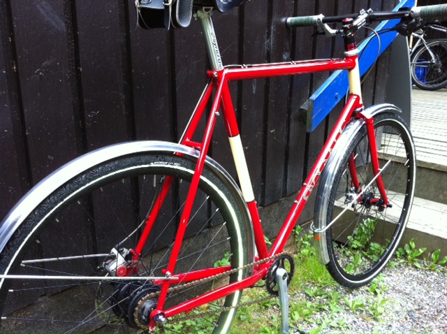 Bakhjul: Alex TD17 rim, DT comp, Shimano Alfine, SGS501, 8 speed