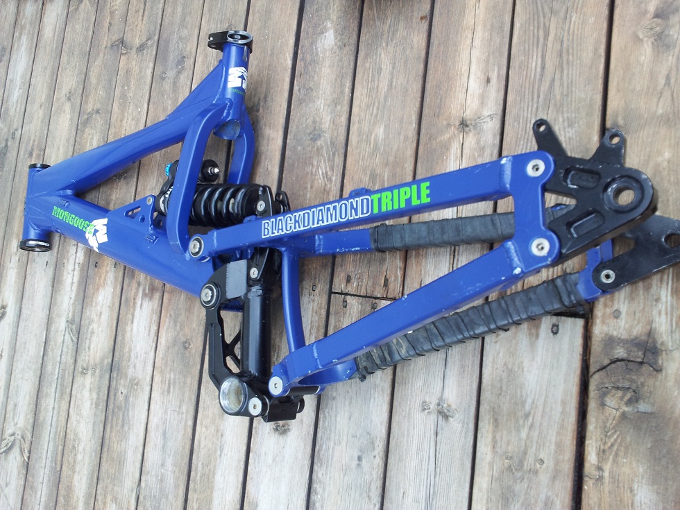 2006 Mongoose Black Diamond Triple m/DHX 4.0 ramme i medium størrelse. Trenger nye foringer i bakramma. Vandring er 170-190mm. Leken og morsom ramme. 1500 kr. Azonic Outlaw hjulsett. 20mm og 150x12mm. Ikke en ripe. Følger med Maxxis Minion 2.7 foran og 2.5 bak, Shimano HG-50 9-delt kassett og Avid skiver i 203 mm og 185 mm. 2200 kr. Fizik Zeak sete. Hodeskallemotiv. Solid nylontrekk, noen riper i plasten på sidene. 8mm rails. 450 kr. Shimano Saint tredelt krank. 175mm armer. Kun montert, ikke et merke på armene. Med lager. 1100 kr. Shimano Saint triggere. Høyre og venstre. 500 kr. Shimano Saint trigger. Venstre. 250 kr. 2004 Marzocchi Super-T 2004 170mm. Noen riper på innerbena. 700 kr. 2008 Marzocchi 66 RCV 180 mm. 1 1/8 kronerør. Noen hakk på venstre innerben. De er nesten fikset med epoxy og polering. Har godt av et oljeskift og bytte pakning/spacer på akselen. 900 kr. Leaf Evo 50 mm stem. 350 kr. Blackspire Kjedefører og e13 bashguard. 200 kr. Kenda Nevegal Stick-e 2.5 bredde. Folding. Helt nye. 400 kr. Ready for race setepinne 31,6 mm x 400 mm. 100 kr. LG Optimus 2X. Fantastisk kjapp mobil med dobbelkjerneprosessor og grafikkbrikke fra Nvidia. Kjører full HD video med Dolby Digital via hdmi kabel. Ikke operatørlåst. 2500 kr.