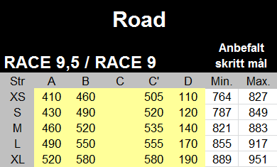 Sykkelen er en Vipera Race 9.5 (2011-modell) størrelse L. Setepinnen er ikke kuttet. For geometri, se tabell nederst.