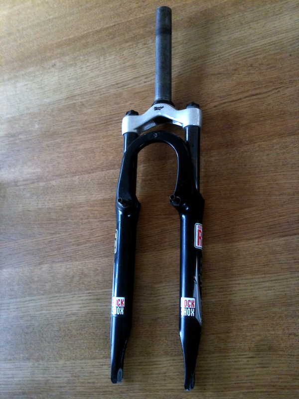 Den veier 1,5 kg og fungerer tipp topp. Vedlikeholdsfri pga. den har geletuber i stedet for fjærer/olje og luft osv... Den kan justeres i stivhet, men har ikke skivebremsfester. styrepinne 18 cm