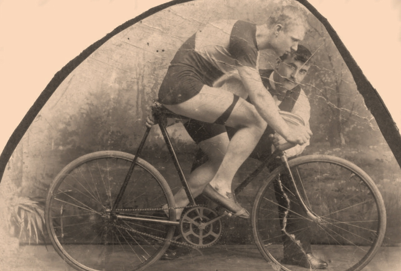 Når det først vises bilder av pene eldre sykler, så vil jeg gjerne vise et bilde av min oldefar Leonard.