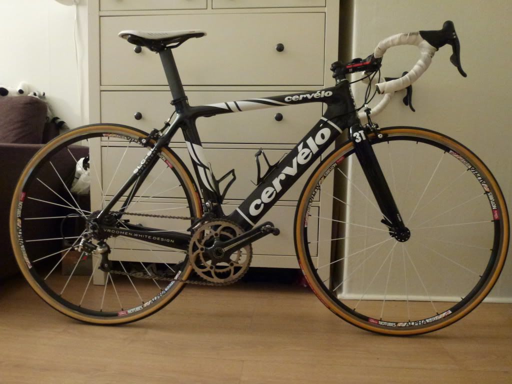 Notubes Alpha 340 felger, sort DT240 nav, sort Powertap SL+ nav, spesialbestilte hvite (!) DT aerolite eiker, og sorte alu nipler. Svært lite brukt. Ferdig tapet. Ekstra eiker følger med.