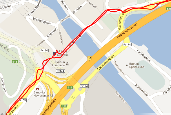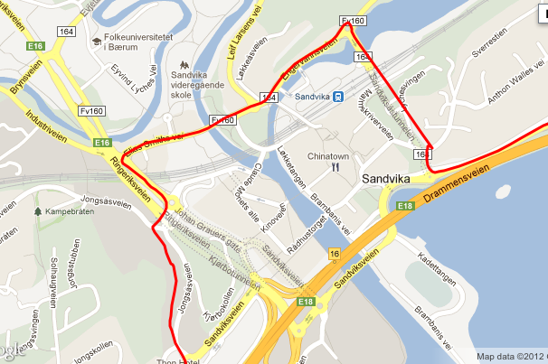 Og fra Sandvika er det selvfølgelig denne ruten som gjelder hvis ikke du sykler racer:  [edit] Og selvfølgelig sykler du racer, siden du skriver på racerforumet...