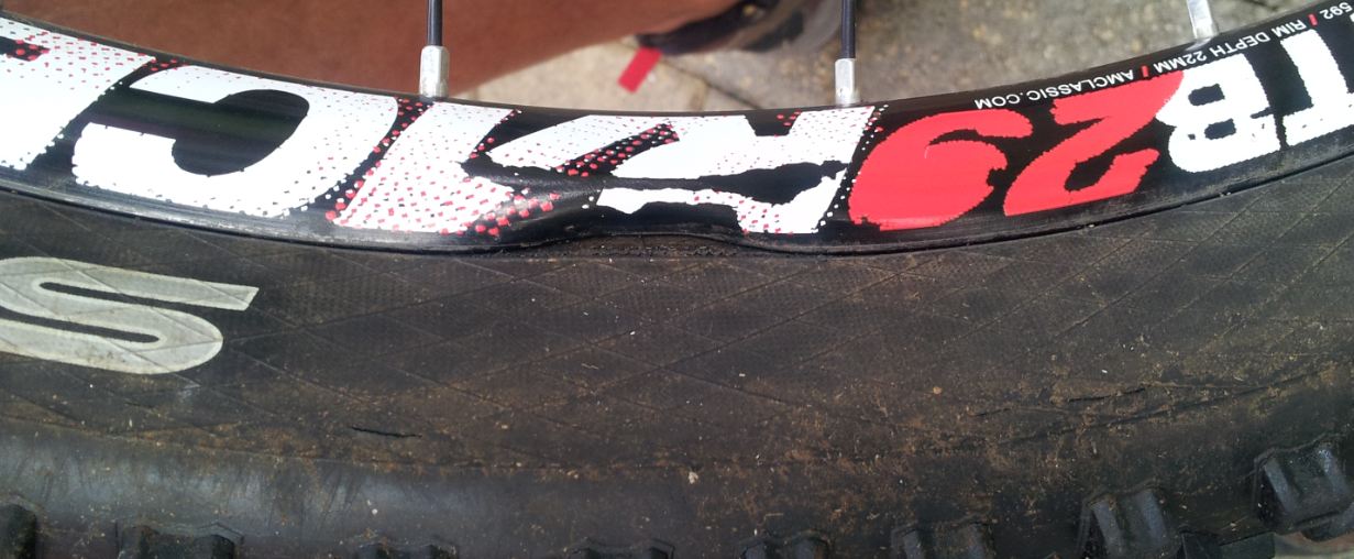 Har du lite luft og får gjennomslag, så vil du uansett få bulk hvis du treffer riktig stein og felgen er lettere. Eller hvis felgen er av myk alu - som eldre DT Swiss og Spank Spike. Fordelen med myke felger er at du ikke punger og kommer i mål ved gjennomslag. Ulempen er at du må bytte felg relativt ofte.