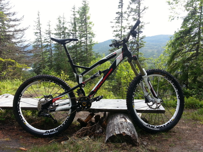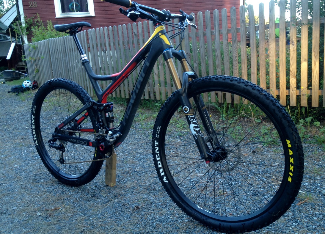 Gir/bremser: Shimano XT Kjedefører: MRP Lopes Krank: Shimnao XTR med MRP 35 tenner Hjul: Syntace W35 Stem: Syntace Megaforce Styre: Synatce Vector Carbon 740mm Dekk: Kommer til å variere litt men nå High Roller II Setepinne: Rock Shox Reverb Stelth Gaffel: FOX 34 Talas 160 mm Factory Kashima Pedaler: XT Trail