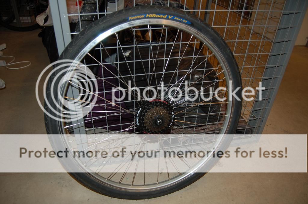 Har også et stk ekstra panaracer dekk. (Likt som på hjul bak)