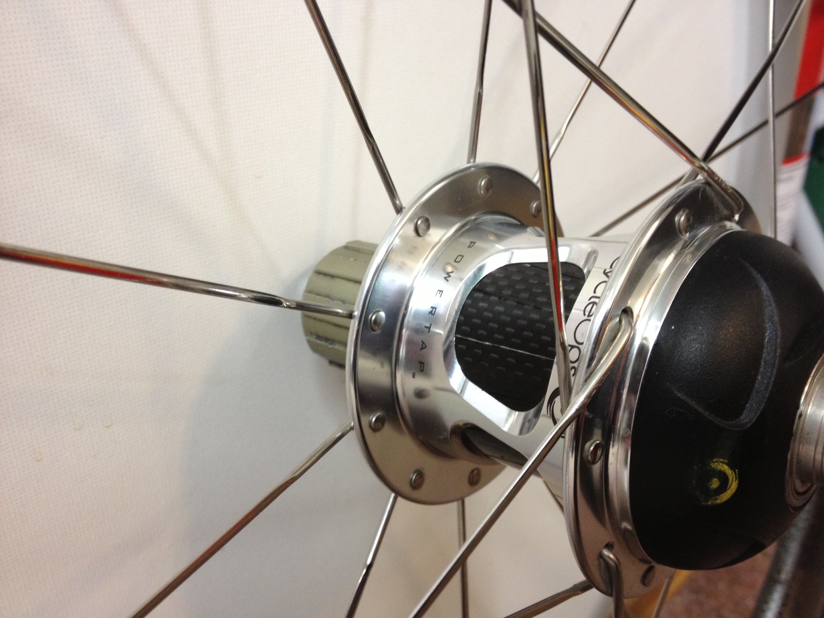 Zipp 404 tubular med powertap Sl+ selges.