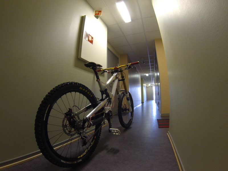 Passer vel for personer 170+. Selv er jeg 168 og den passer fint for meg med kort stem. Dvs. stem på 23mm som viser på bildet. Det er også mulig å få med et hope integrert stem(45mm) som gjør at sykkelen får lengre reach og føles mer som en Large.