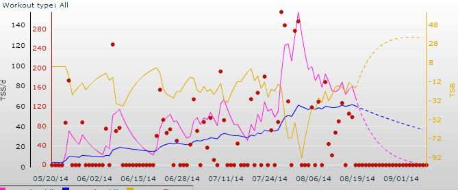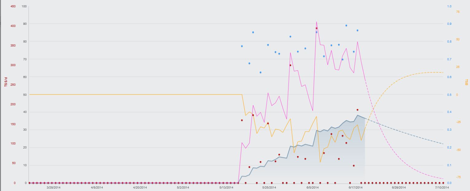 For meg ser det ut som om "Fitness" (CTL) stagnerer eller er på vei inn i en negativ trend, mens formen (TCB) trender oppover.