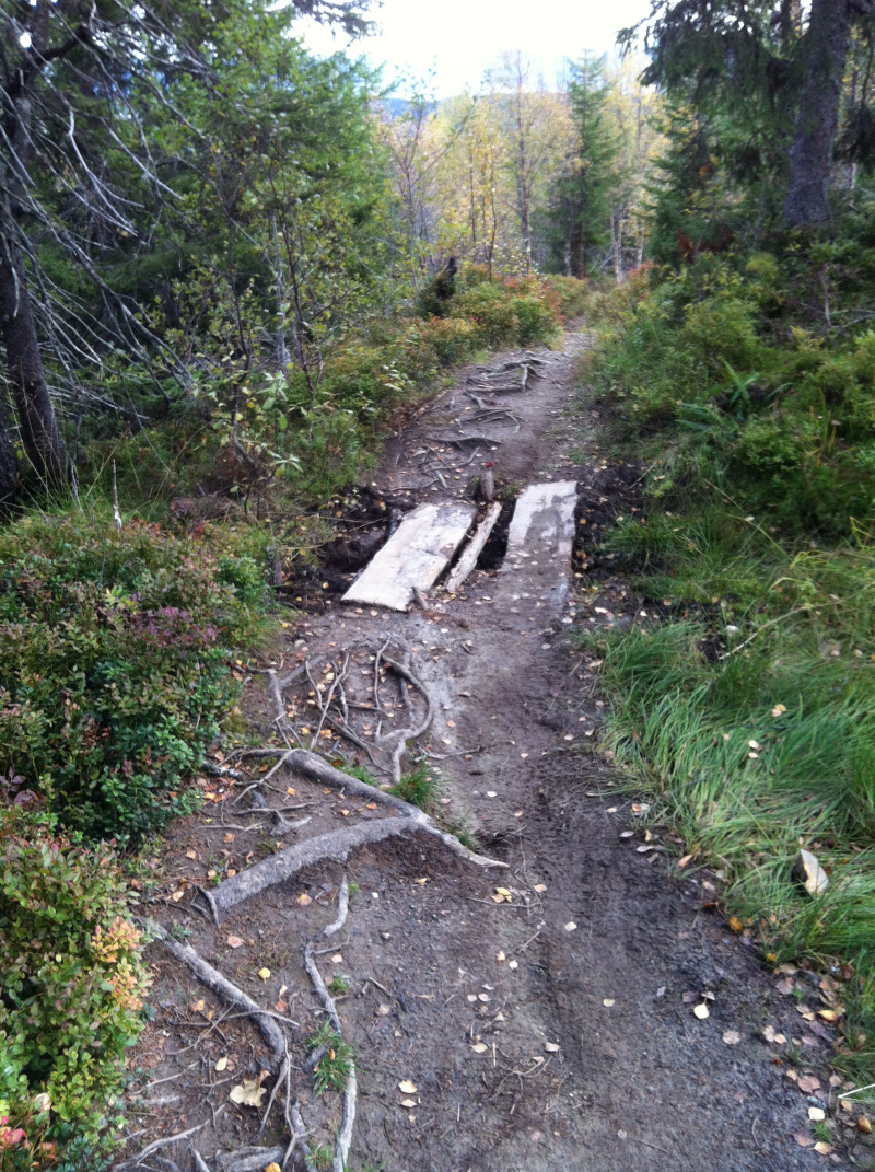 Hei, ja du ja! Regner med at din/deres tanke var god med tanke på alle de "fine" utbedringer som er gjort i Udbyesløypa. Nå er det slik at den løypa var helt fin fra før av, hvorfor måtte du/dere gjøre den altfor sykkelbar???? Det er jo ingen av de to, eller kanskje det ene, cruxet igjen...MAKAN!! Hadde jeg sett deg eller dere hadde jeg piska dere langt bort og tuppa raka og spaden i langt opp en viss plass. Udbyes var den eneste løypa som kunne kanskje kanskje kalles krevende. Hva har vi igjen nå? Nei, nettopp...ingenting! Neste sommer tar jeg med lighter og bensin og en enda større spade. Tenner på de broene og spar bort de bermsa og lager cruxsa på nytt bare brattere og større sånn at dere får en like "fin" surprise når dere kommer nedover. Lykke til! Næmen så veeeeeeeeldig hard da. Ser det prinsipielt viktige i å diskutere hva som er riktig og feil vedlikehold av sti, men dette blir jo bare latterlig. Jeg skjønner at det må være vondt å være så god at livet ikke byr på utfordringer lengre, men det finnes vel fortsatt et og annet crux som også kan gi deg livskvalitet? Sånn fra hofta kommer jeg på Gråkallskrenten og Storheia? Har du satt Gammelstien uten fotisett? I tillegg er jeg sikker på at det er mye interessant ned mot Trolla og Flakk for en harding som deg. For jeg er sikker på at du allerede kjører hardtail med stålgaffel og trillebårhjul (26") ??? Eller vent litt: Du kjørere vel ikke DH sykkel??? Vær så snill å si at du ikke shutler opp til skistua og kjører DH sykkel for da kommer jeg til å le til jeg pisser på meg av kommentaren din. Fra spøk til revolver: Jeg håper du forstår at du ikke kan ødelegge vedlikeholdet som er utført av fotfolket.