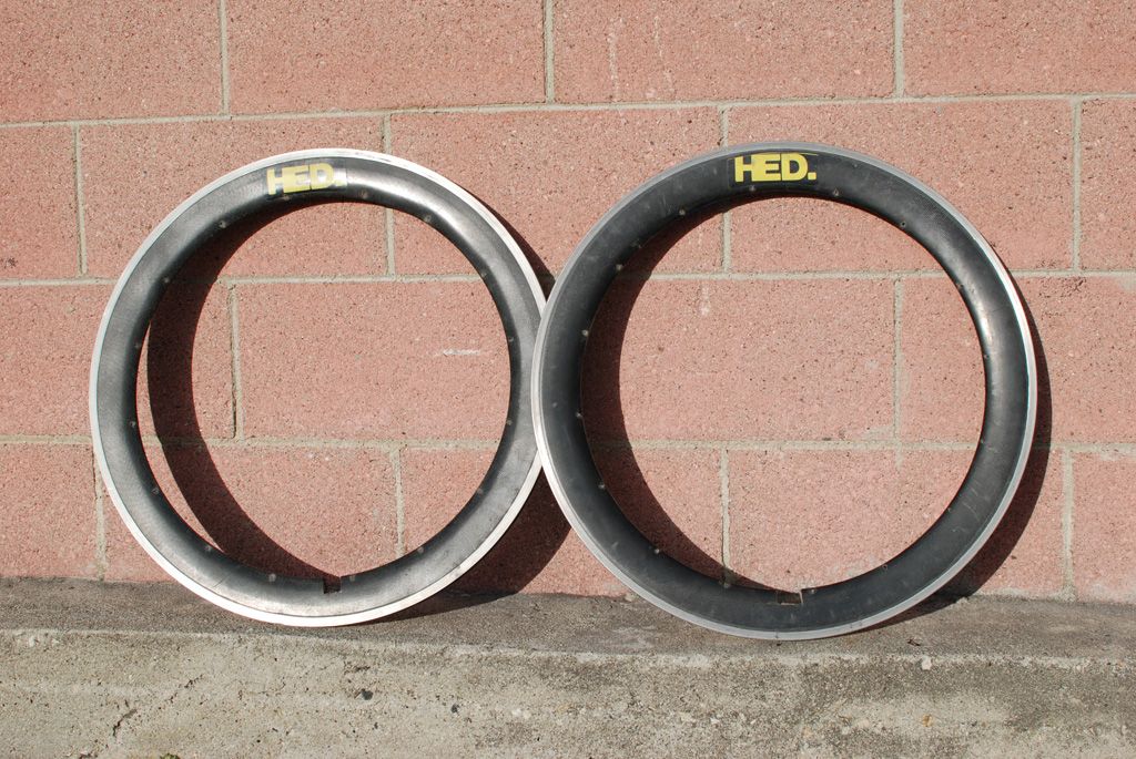 Den forrige eieren har gått løs på dem med vinkelsliper ellerno, det skal ikke være så dype "høl". Skikkelig helligbrøde, på gamle HED-felger