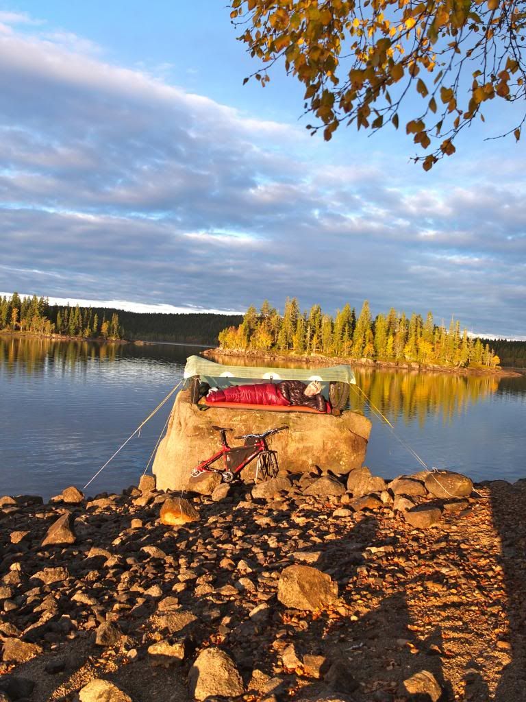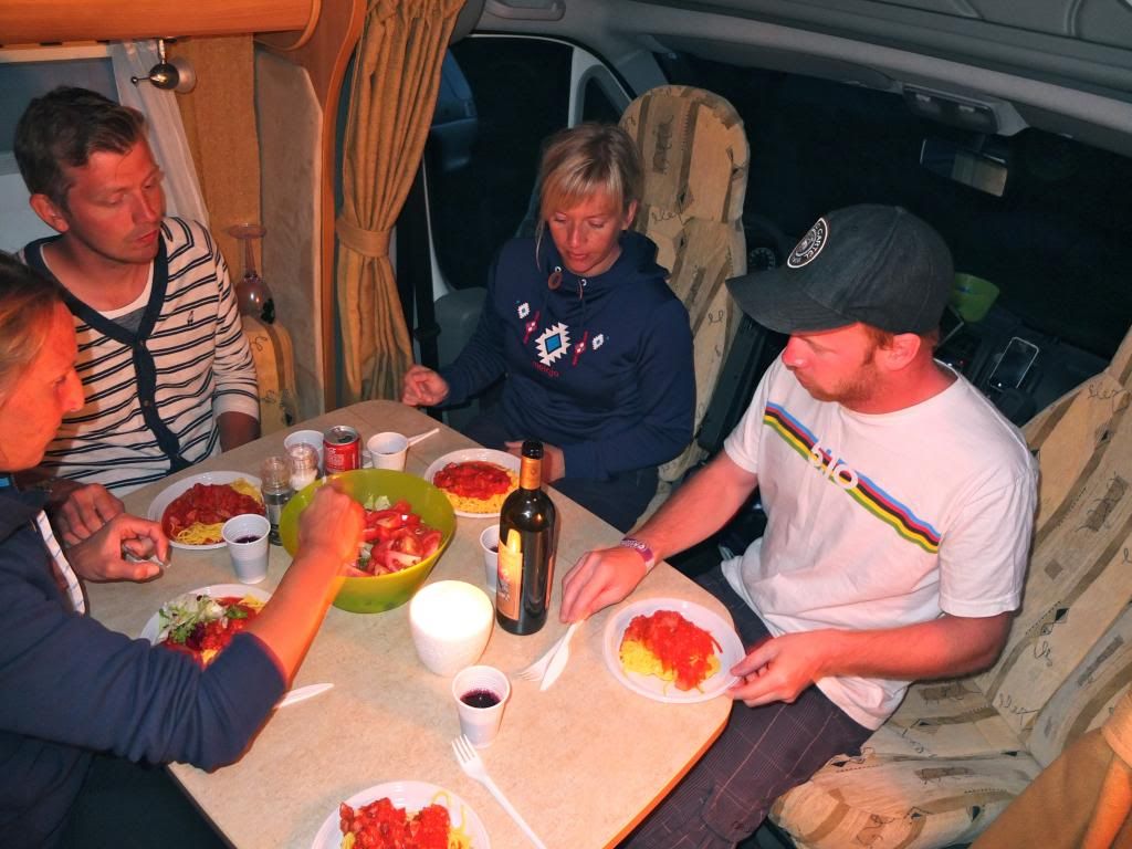 Etter nesten en times pause så bestemmer vi oss for å dra ut igjen. Det høljer fortsatt ned, men gromsti venter. Etter flere stier og tre timer til med sykling bestemmer vi oss for avslutte dagen. Det har sluttet å regne, og vi sykler tilbake til Studenterhytta hvor Marius har fikset marinert laks og nøgne ø for kvelden.