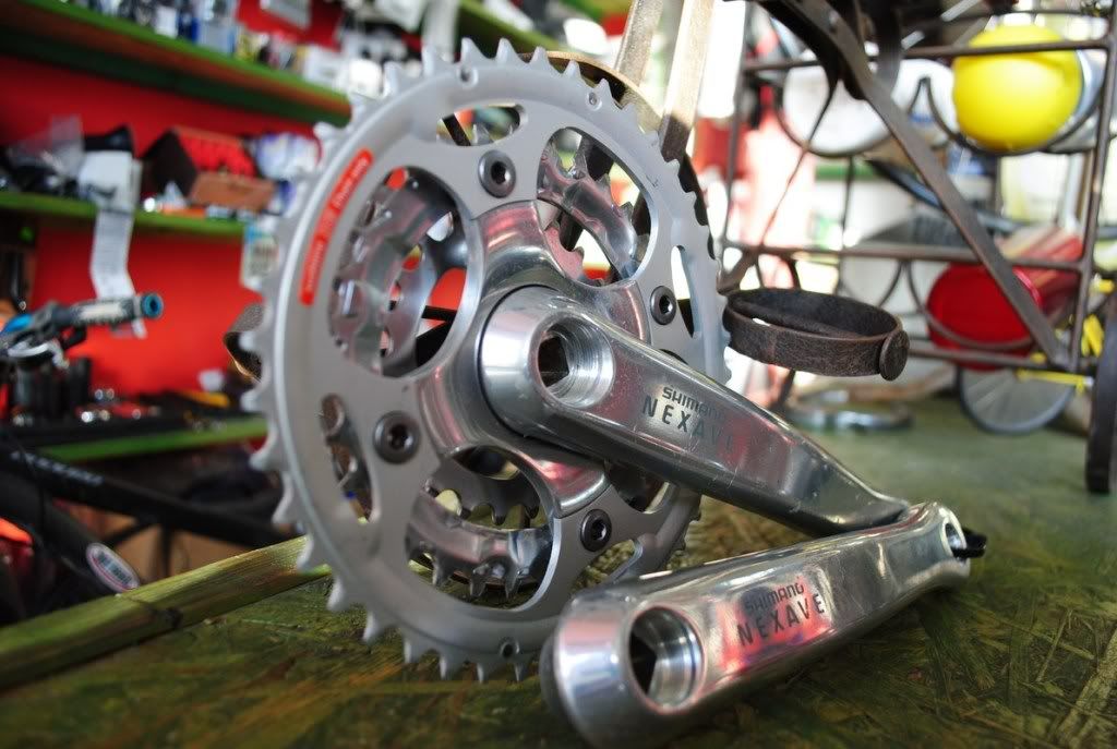 45mm høres veldig bra ut. Joda.. Kan sette på den, men den vil ødelegge stilen fullstendig på sykkelen. Spesielt med tanke på at det også på denne er annen venstrearm enn høyrearm. Jeg tror jeg beholder XT-kranken på frem til hun melder om ubehager/plager med den kranken. Og for ordens skyld: Det ER viktigere at hun får en sykkel hun har det gøy på enn at den er kulere enn Markus sin. Her er forøvrig 152-kranken: Høyre og drevene går bra (evt. uten 'bashring) men jeg skjønner du er skeptisk mtp. da stålklumpen på venstre side. Med det at hun bare er 135 høy så ville jeg vurdert mange andre muligheter for å bytte ut 175mm kranken. Vil absolutt ikke love noe, men skal se om jeg har noe i en roteskuff som kan passe. For det ER viktigere å ha det gøy enn å ha en kul XT-krank.