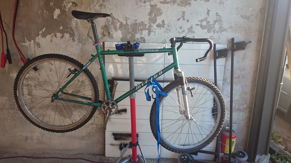 Har et prosjekt som jeg er veldig tvil om skal ende sine dager på fyllinga, eller om det er noe å ta vare på. Det er en Miyata Elevation 300 som ble kjøpt ca 93-94. Utstyrsmessig var det Alivio som stod på, mens det stort sett var STX på andre sykler til omtrent samme pris. Og argumentet i butikken var at ramma var så mye bedre enn andre merker. Har ikke funnet noen størrelsesmerking, men det aner meg at den er 19 eller 20", den føles mye større enn min Trek CX på 56cm. Gaffelen er ikke original, det var stiv gaffel, men tror den er kasta...