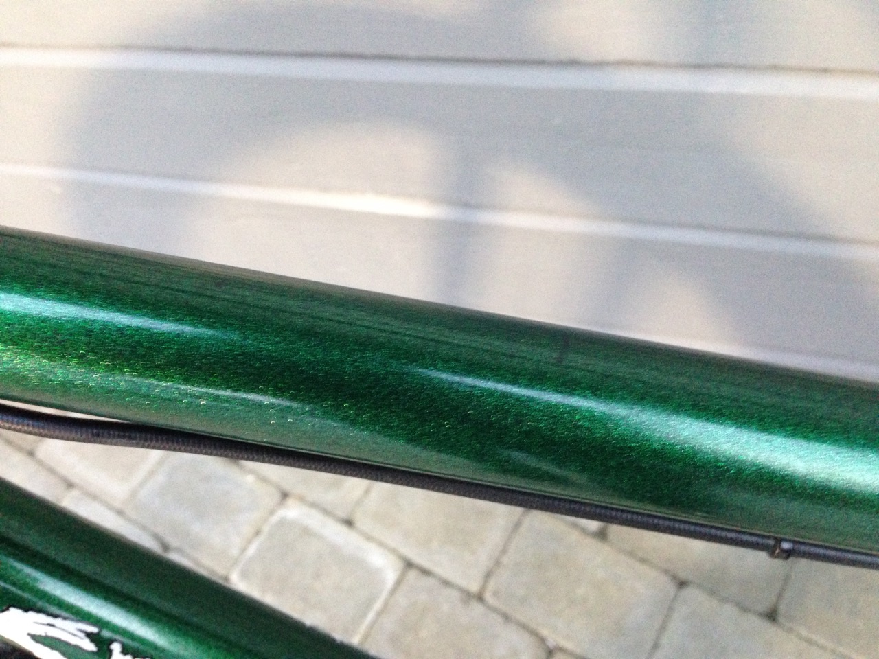 På grunn et plutselig kjøp av fatbike (som også kan brukes som 29+) må jeg nå selge min grønne Krampus i størrelse large. Har hatt mange fine stunder på denne. Kjøpte den på høsten i 2013. Sykkelen er brukt men ikke veldig slitt. Som man kan forvente finnes noen riper i rammen og tegn til kablegniss.
