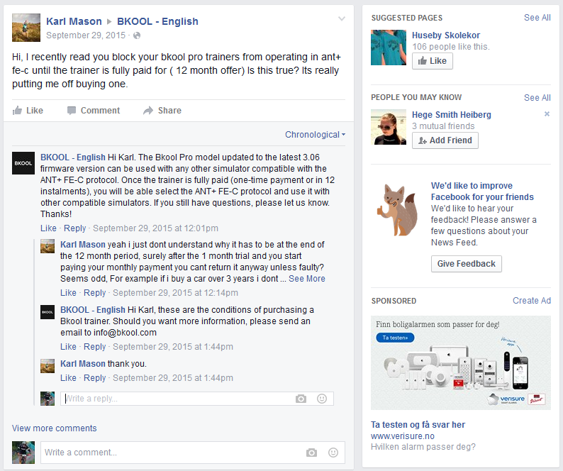 Jeg kjøpte meg en Bkool Pro. Har syklet noen ganger, men jeg for ikke til "resistance" på rulla.