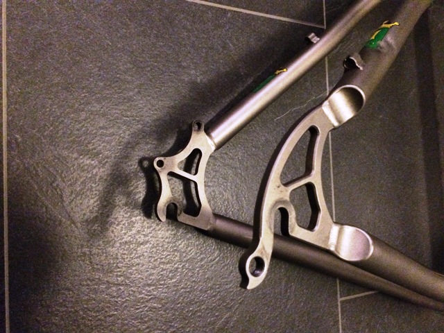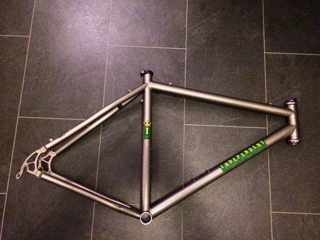 Har fått en lekker titanramme i hendene, som jeg ikke trenger... Independent Fabrications, med setepinneklemme og Chris King styrelager Størrelse, ca 19" (dessverre litt for stor for meg på 175 cm). For 26" hjul, veier ca 1650 gram inkl styrelager og setepinneklemme (27,2 mm pinne) Fin stand, liten bulk på høyre bakgaffel (se bilde), ellers kun noen små kosmetiske merker. Pris? Usikker på hva denne er verd, så kom gjerne med forslag!