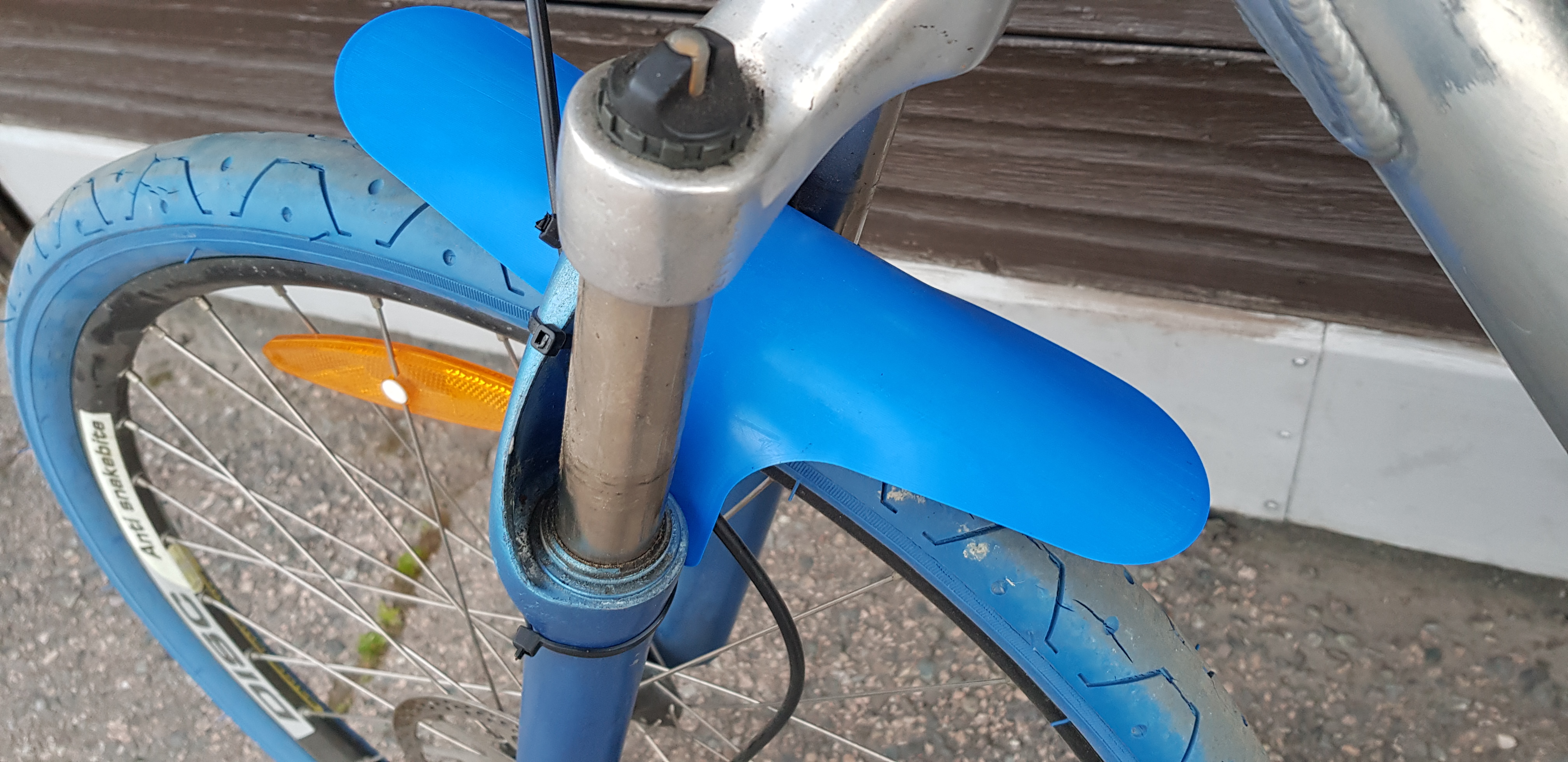 Apropos 3d-skriver. Jeg satte sammen en sykkel med mye blått og fint, og ville ha noen skjermer som passa, noe som viste seg vanskelig å fine på markedet, så…