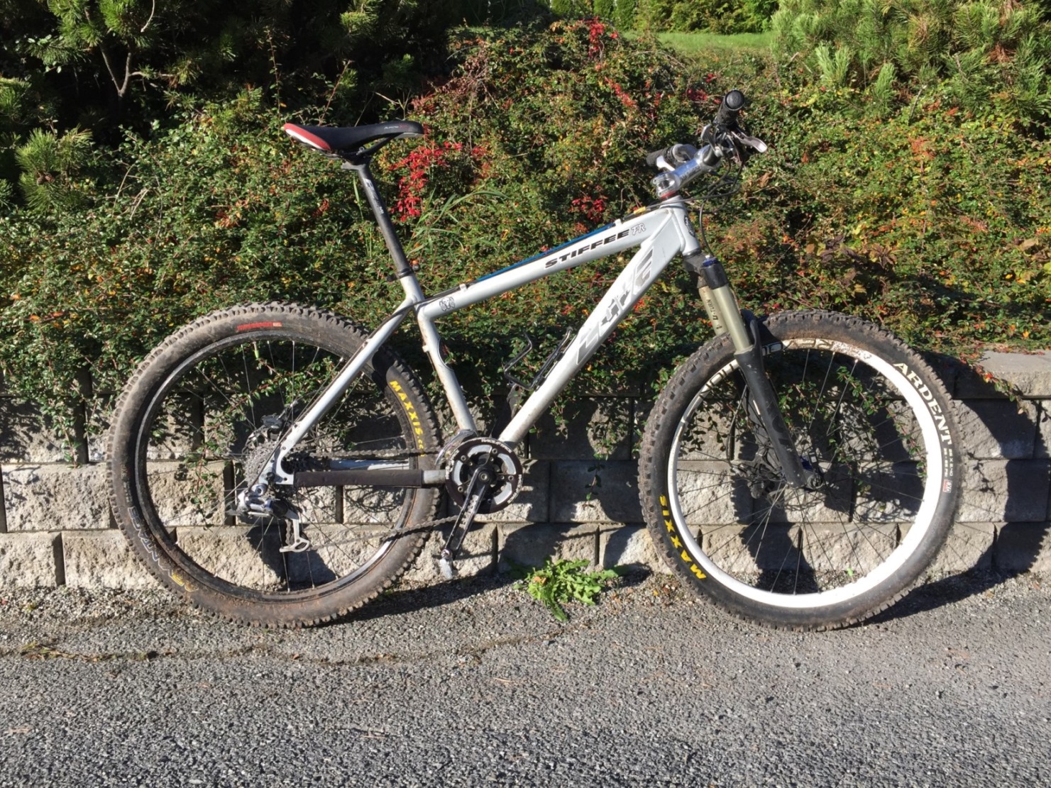 Men den er egentlig litt for liten til meg, og ryggen har blitt gammel og nekter å sykle mye hardtail, så da vurderer jeg å selge den videre til et varmt sykkelhjerte for en hyggelig pris. Alternativt lagrer jeg den til guttungene er store nok.