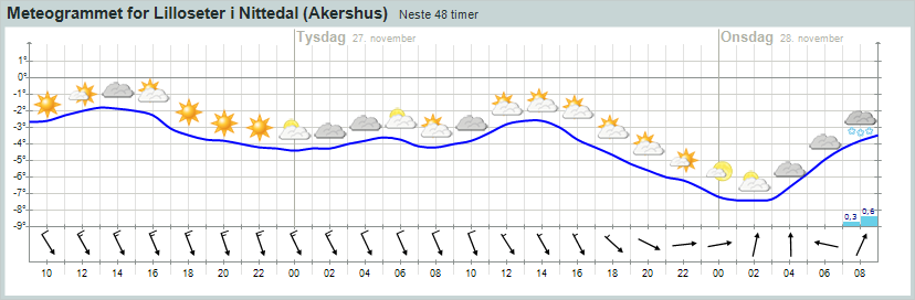 Yr.no lover forøvrig pent vær og et par minusgrader!