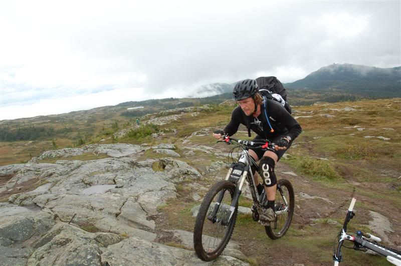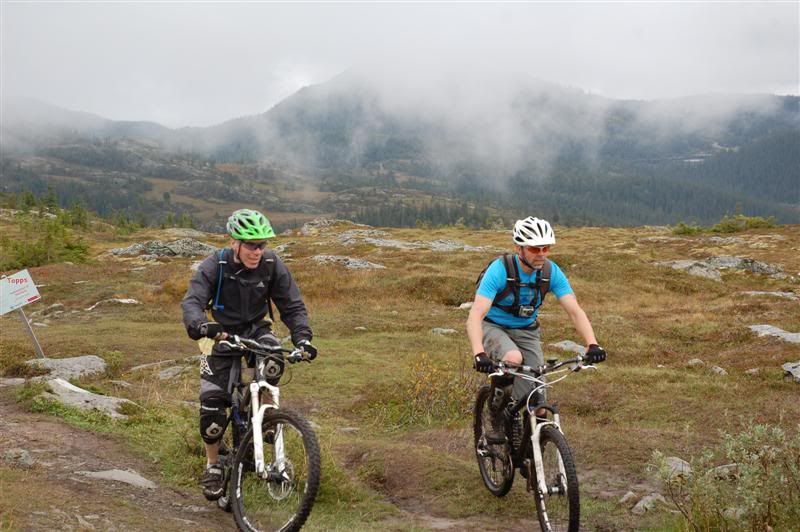 Ryttere: Øyvind (gul sekk), HansA (Gul jakke), Ole Petter (oransje trøye og rosa striper på shortsen...), Arild (grå sekk) og undertegnede (hjelmkamera). Soundtrack: Vindstøy og klapring fra en løs stropp.