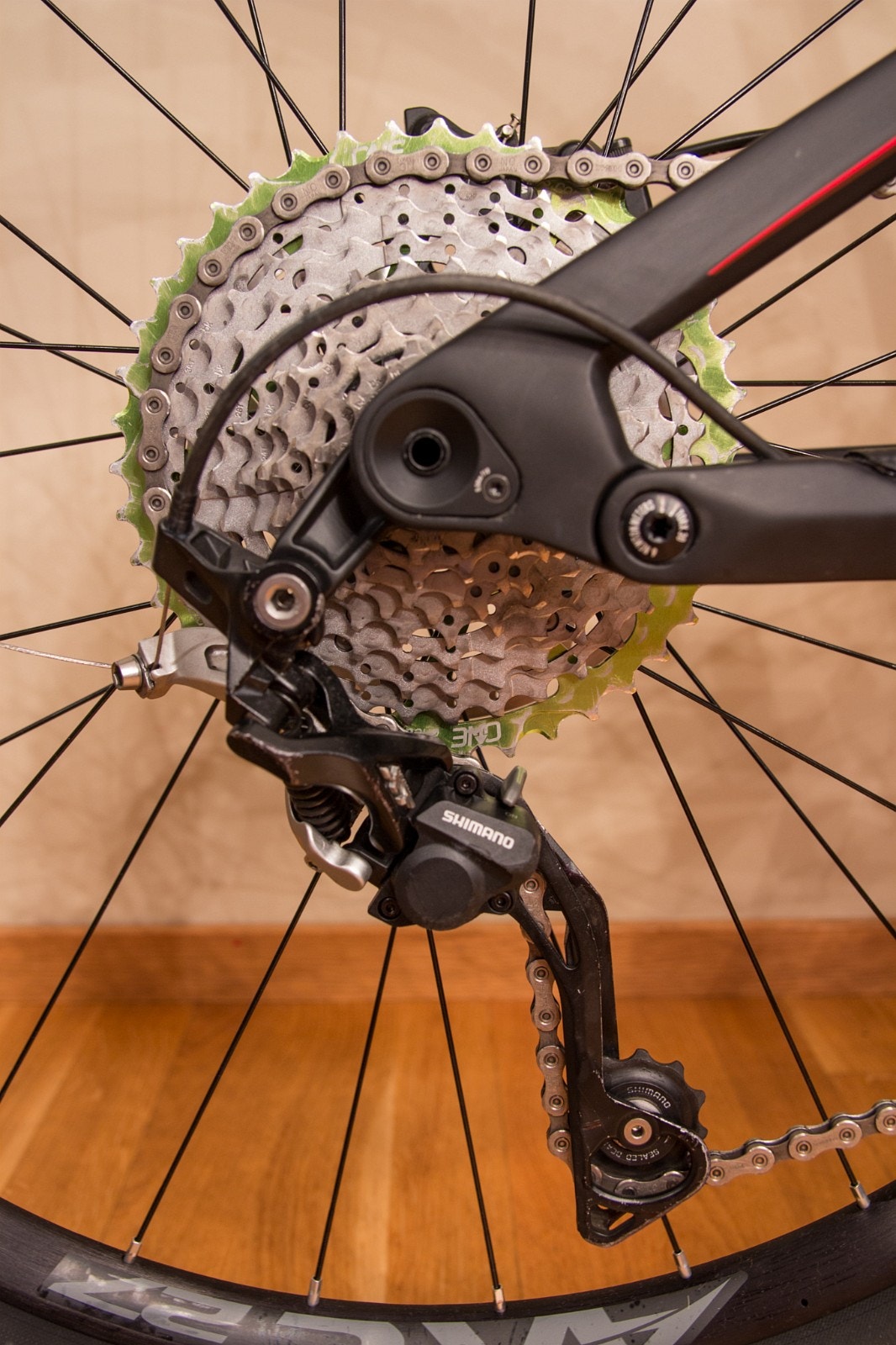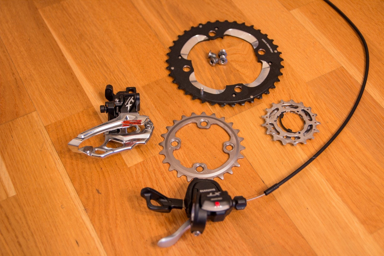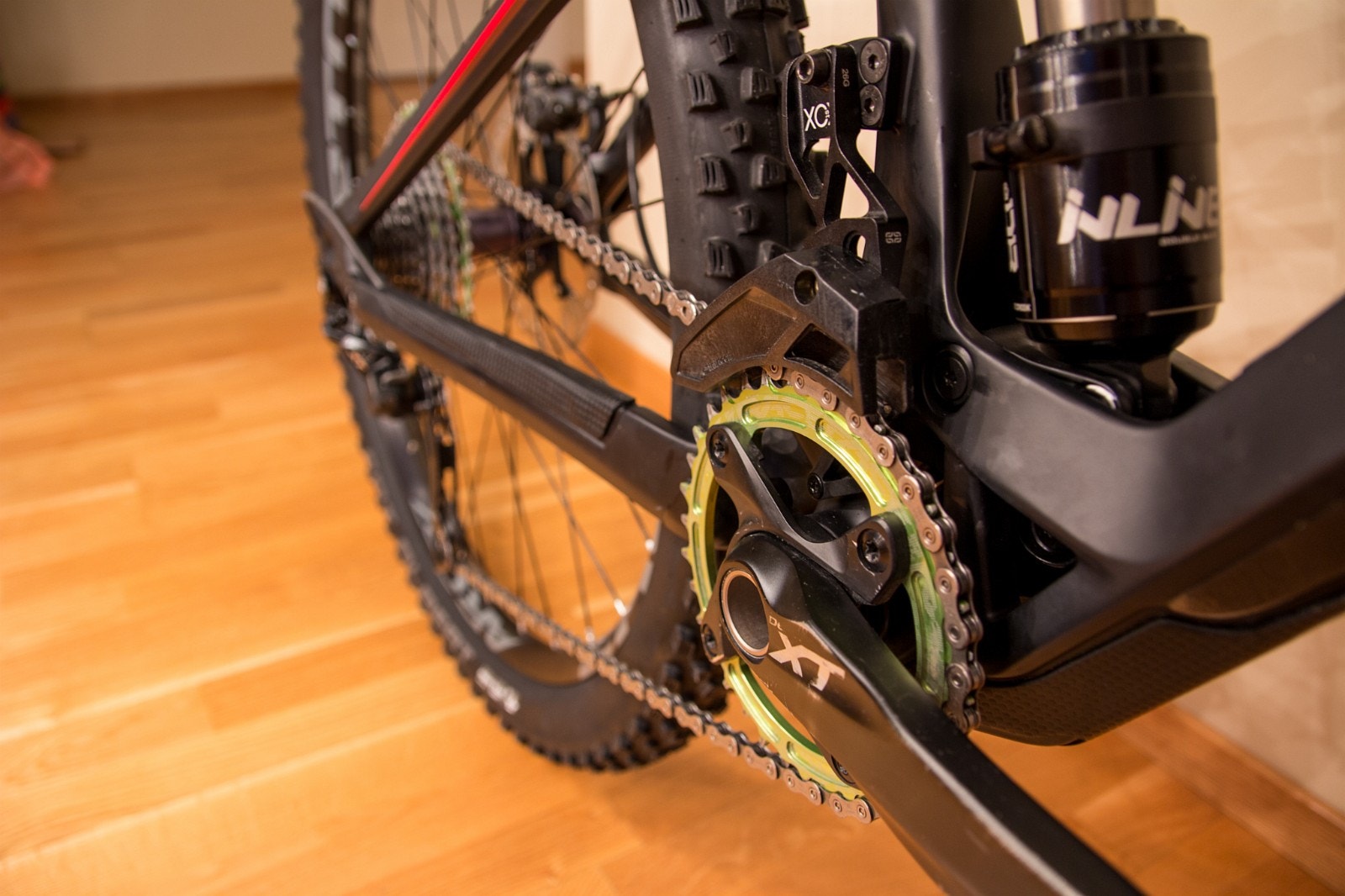 Bygget om til 1 x 10 med RaceFace 34 tenner foran og OneUp 42 bak.