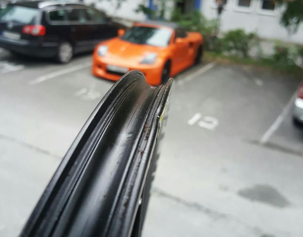 Han påpekte via sms at det var en bulk i felgen foran og bak, og at bosset i bakhjulet trillet dårlig. Jeg ble enig med han at jeg skulle skaffe en eike, lager til boss og noen andre småting og sende han i posten slik at dette kunne bli fikset for minst mulig påkostning for hans del.