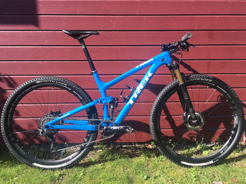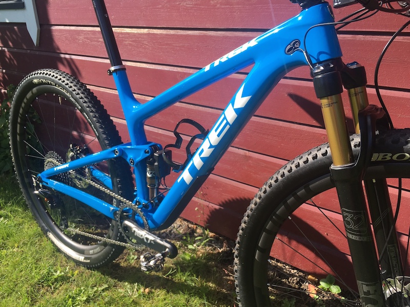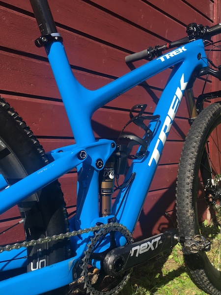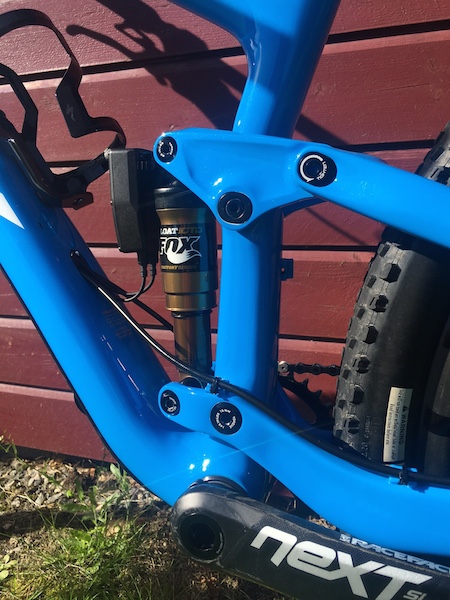 Oppgradert til FOX´s IRD system med elektronisk låsing, det vil si ny bakdemper og bytte av cartridge i fremdemper. Batteri ligger gjømt i rammen. Fantastisk låsing med minimalistisk bryter. Videre ble bremsene oppgradert fra Shimano XTR M9000 Race til Avid Ultimate RSC, rå stoppkraft som matcher sykkelens øvrige kvalitet. Kassett ble byttet til SRAM XO1 for bedre rekkevidde på gir, samt XX1 kjede for 15mil siden.