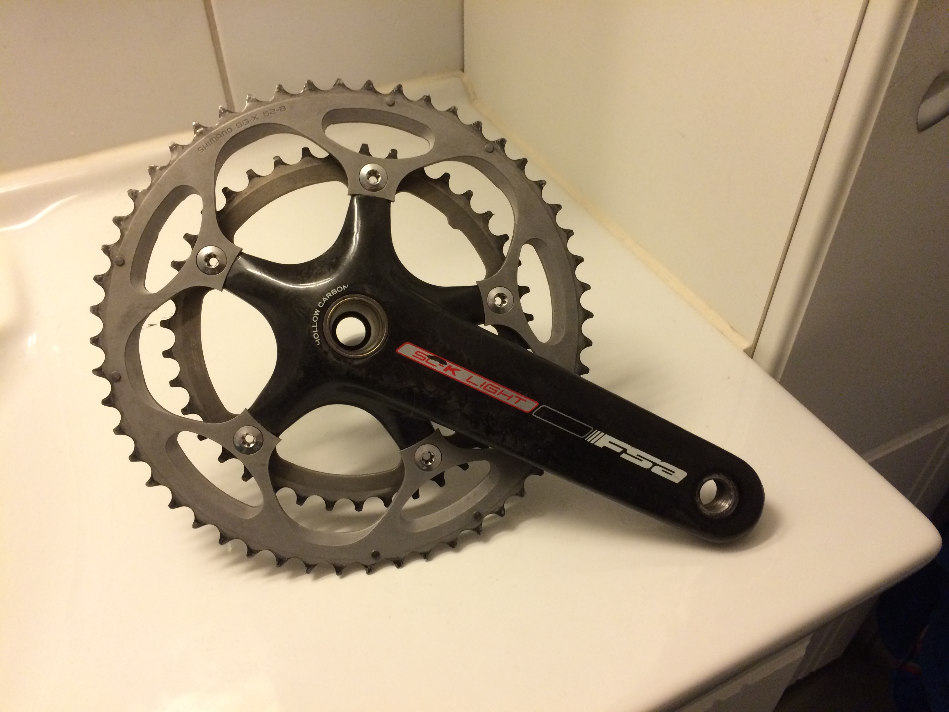Og mitt forhåpetligvis enkle spørsmål er om jeg kan bytte dette kranklageret med for eksempel et Ultegra Hollowtech II lager? Så langt jeg har funnet ut skal det gå fint, men finner så mye ulik info om lager til FSA SLK-light kranker at jeg blir usikker. Også er det en sånn bølget bladfjær som skal på motsatt side av drivlinjen, og da er det kanskje veldig viktig at lagerkoppene er nøyaktig like brede som de opprinnelige? På lageret står det FSA MegaExo Ø24, og det er 68mm bredt. Hva mener dere som kan dette?