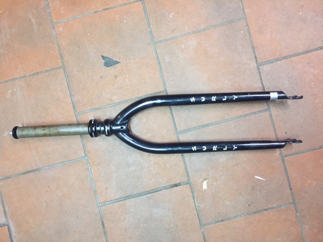 Hel og fin 26+ gaffel selger for kr. 600,- Det følger med et FSA styrelager Kronerør: 22 cm http://surlybikes.com/parts/forks/1x1_fork