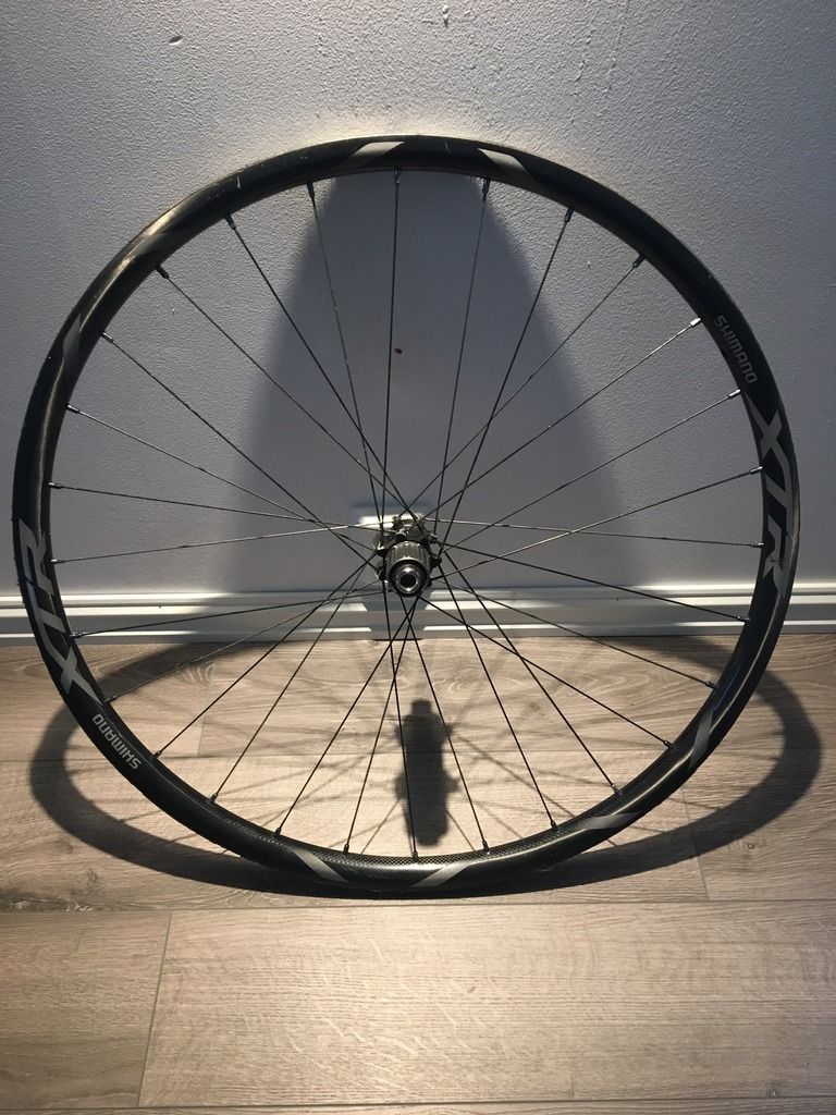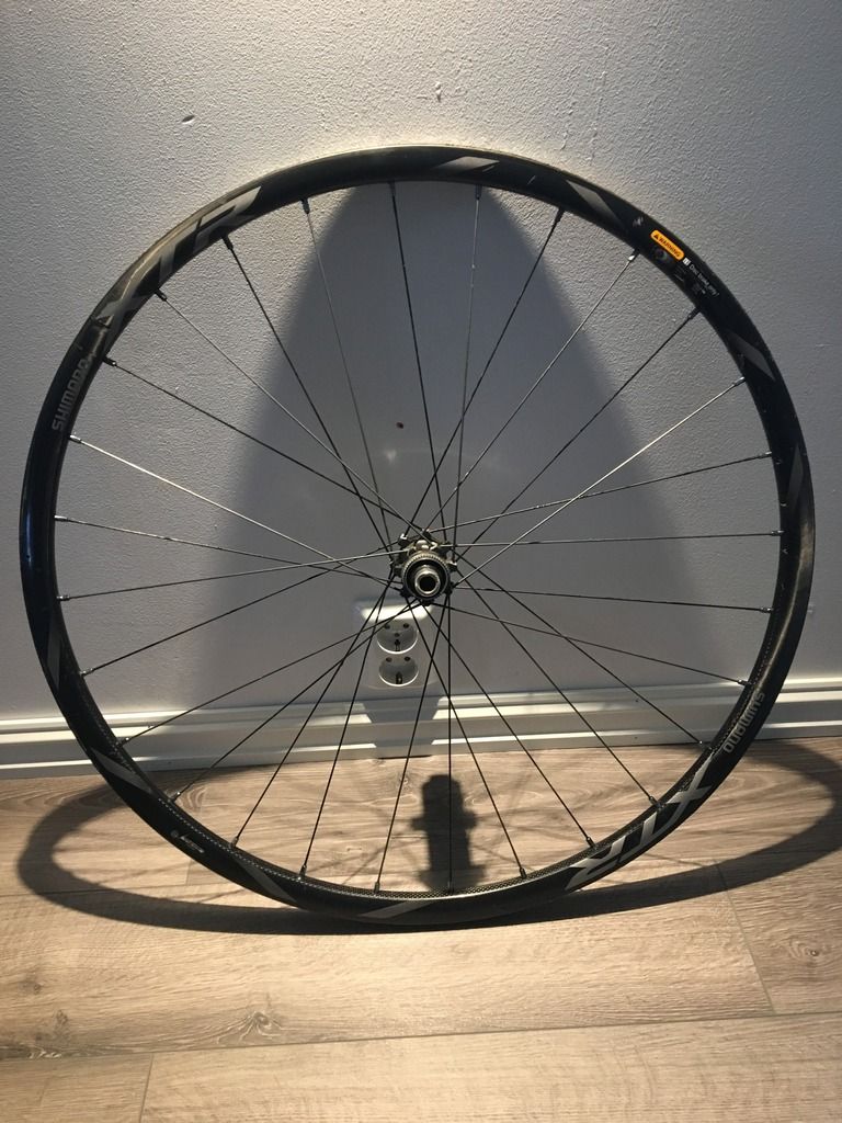 Selger et sett med Shimano XTR M980 Tubular MTB for 29". Framhjulet er feilfritt og det sitter på tufodekk som er teipet fast. Bakhjulet har fått noen skavanker av type sprekk i felgringen. Kan brukes uten noen problemer, men er vel anbefalt å fikses noe som han Otto gjør lett. sitter for tiden ikke noe dekk på bakhjulet, men har mange tufo dekk til salgs også hvis det skal være av interesse. Bilde kommer i løpet av dagen. Har 12mm og 9mm aksling bak. foran er det 15mm