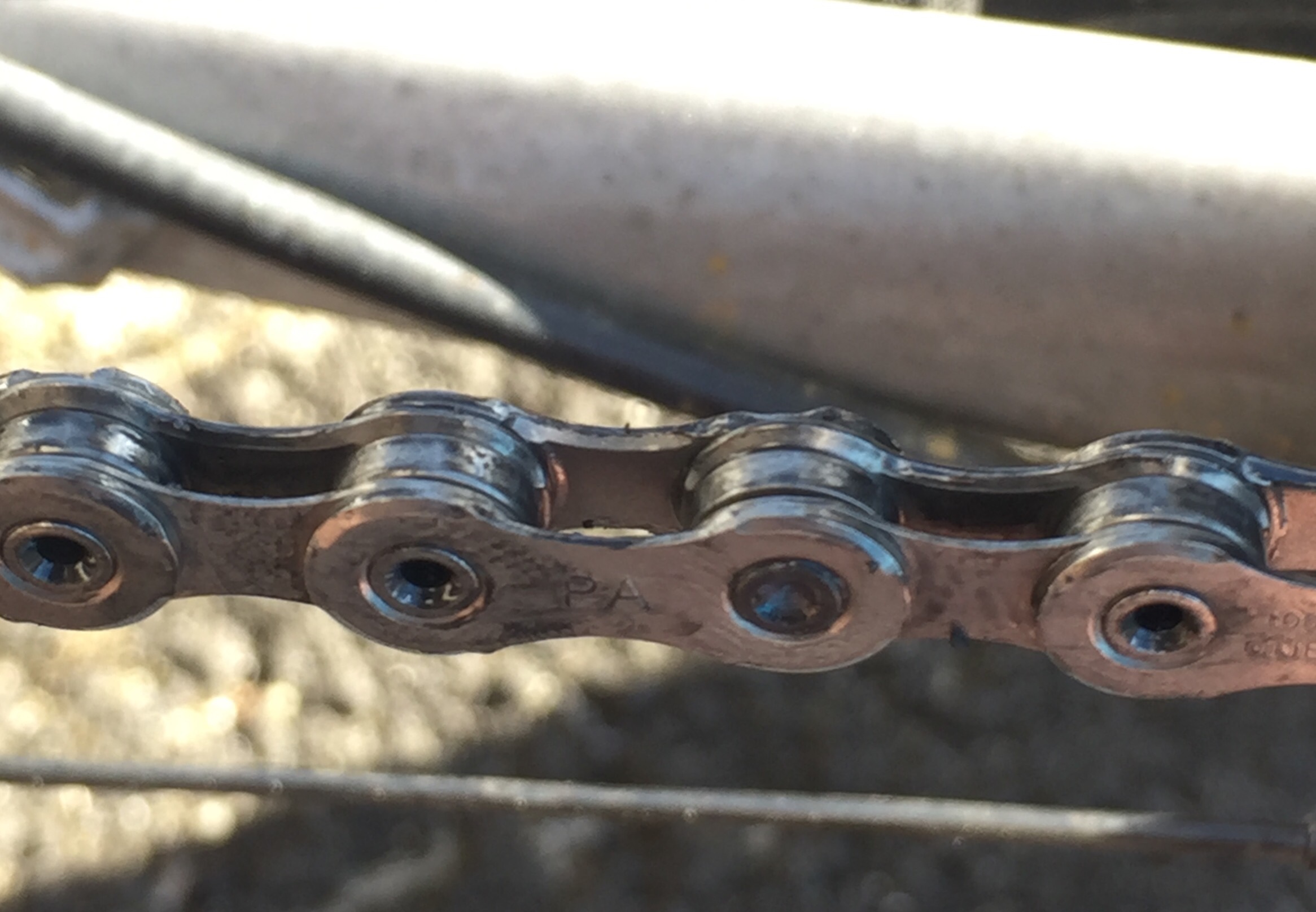 Sykkelen jeg nevnte over hvor kjedet har 3500 km har aldri blitt annet enn spylt og tørket av. Kjede og kassett er selvsagt ikke skinnende blankt, men ser bra nok ut og er mer enn rent nok funksjonsmessig.
