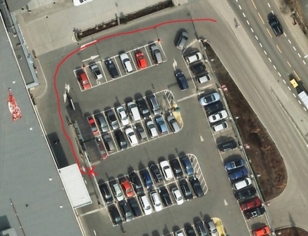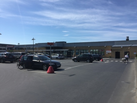 Med sykkel på taket lot jeg være å kjøre inn i parkeringshuset på CC Vest, og kjørte heller opp på plassen ute. Ingen skilt advarte meg om at dersom man følger anvist rute, så står det en bjelke helt uten funksjon inne på plassen.