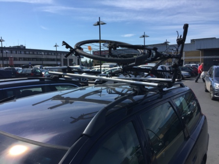 Ja, jeg banna en smule, og ja, jeg skal sende en mail til CC Vest og spørre om det kanskje hadde vært en ide å markere denne bedre, eller enda bedre fjerne den. Spent på hva forsikringsselskapet syns om å dekke sykkel, sykkelstativ, takstativ, takstativføtter, takreling og bulker i taket...