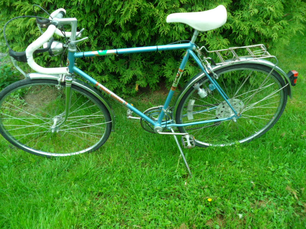 Farge blå , brukbar stand , men bør gåes over vis den skal brukes i høy hastighet .