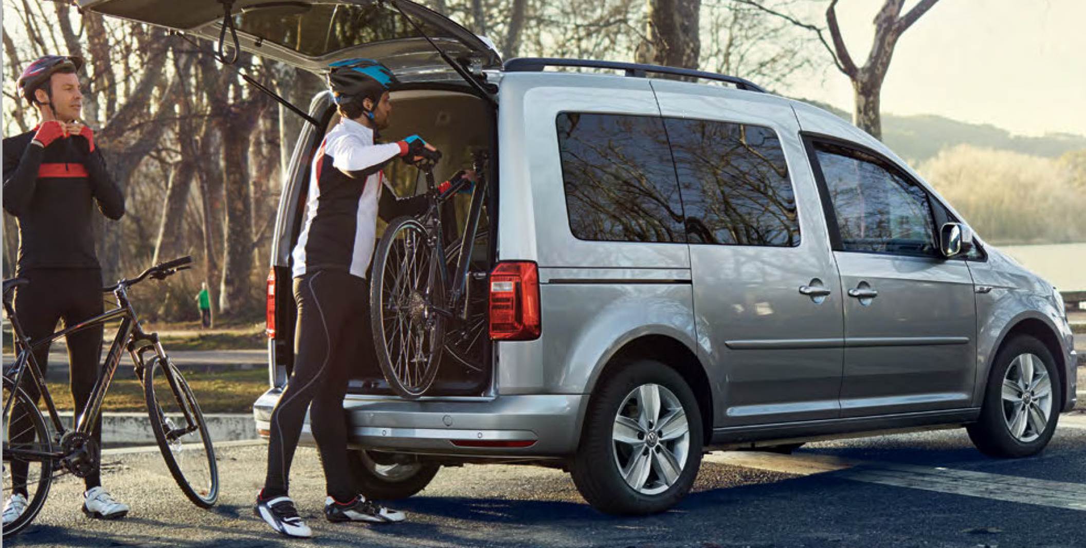 Ser at Caddy Maxi ser ut til å ha plass inni bilen til sykler om en legger baksetet ned.