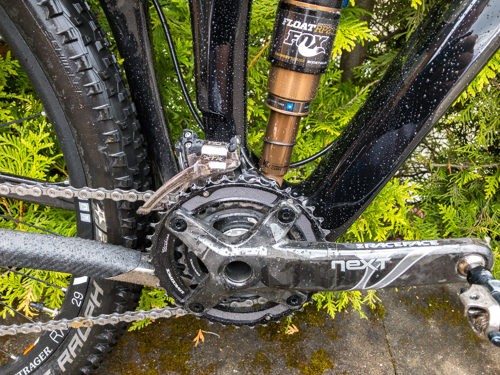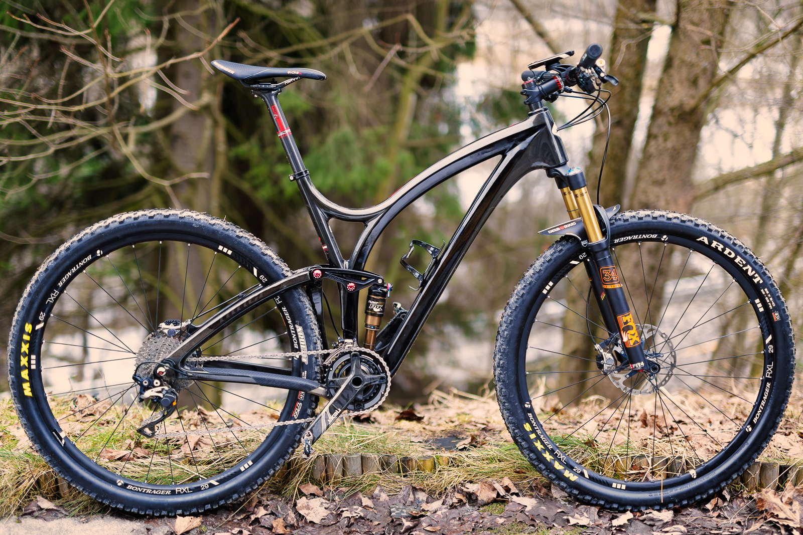 Det står full XTR gruppe på sykkelen. XTR pedaler, Carbon flaskeholder, carbon setepinne, carbon styre, Raceface carbon krank, Bontrager RXL 29 hjul.
