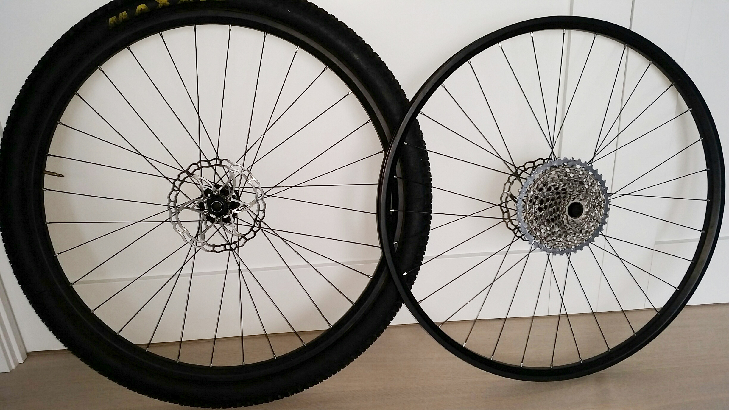 Lett og stivt 29-hjulsett med 30 mm karbonfelg. Bygd som ritthjul for norgeselite terrengsyklist. Knapt brukt etter dette. Maks ryttervekt 120 kg, så dette funker både til hverdags og fest.