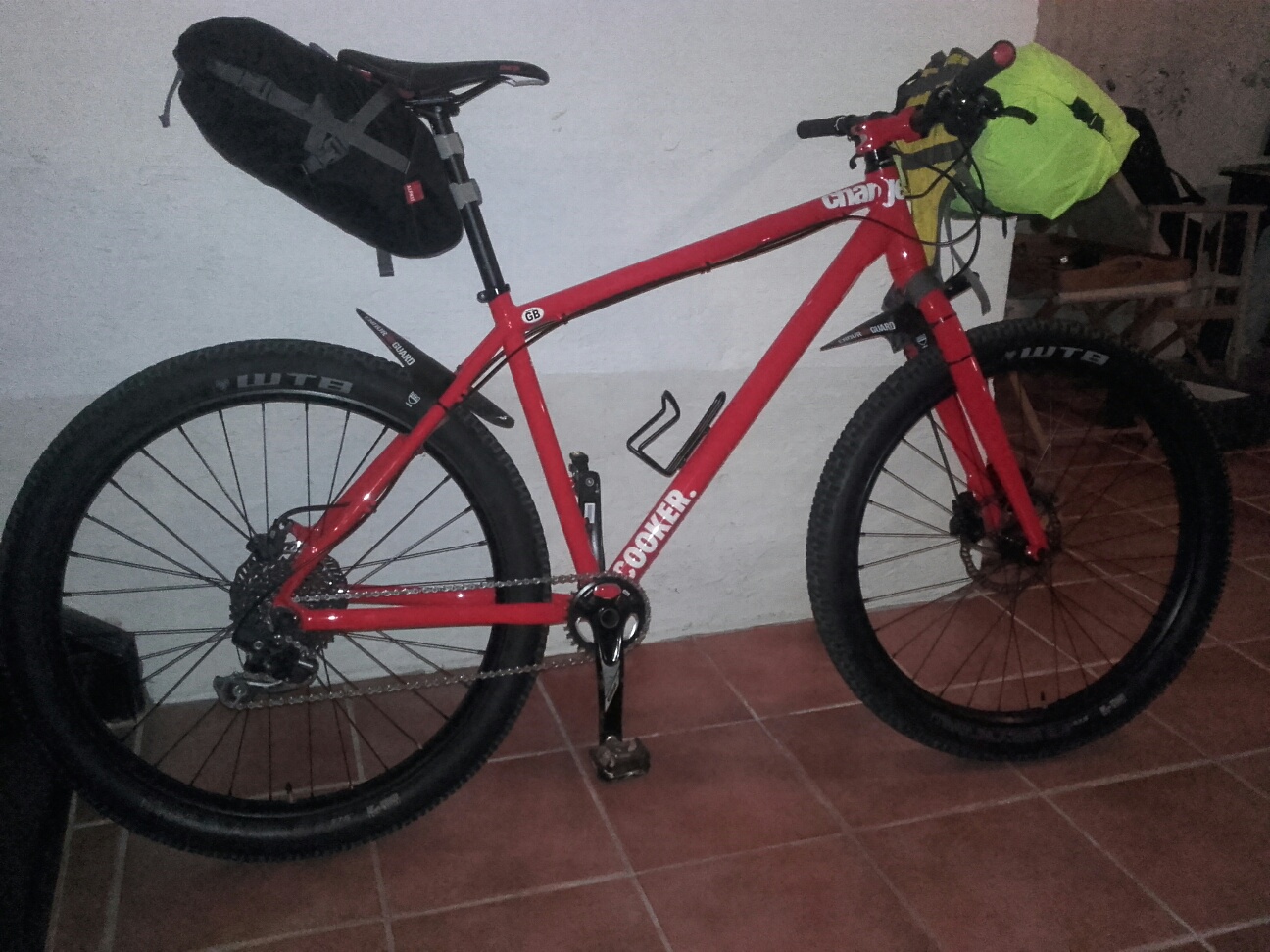 Nå med bilde av aktuell sykkel, her ikledd bikepacking-utstyr (følger ikke med, men sykkelen er veldig godt egnet til bruken). Selges med andre pedaler. Str L er oppgitt av Charge til å passe for ryttere 180-188 cm. Vh Petter S, Oslo