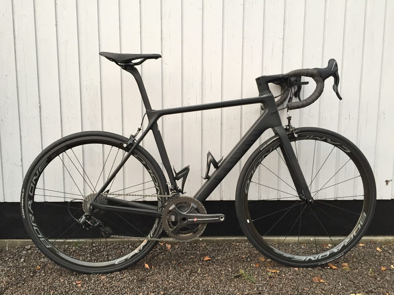 Sykkelen har kun vært brukt til trening og tur, aldri i ritt og har ikke vært i velt. Vasket, polert og vedlikeholdt jevnlig.