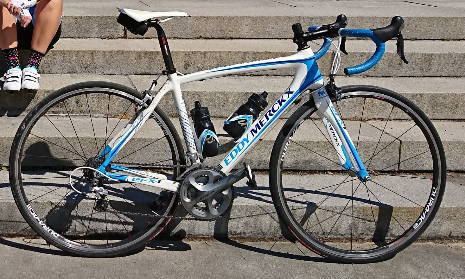 Meget god fullkarbonramme fra Eddy Merckx, og karbongaffel. Sykkelen har komplett Shimano Ultegra 6700 gruppe. Kompakt krank 170mm. Nyere Dura Ace 7850 hjulsett i karbon/aluminium som har trillet ca 200km. Sykkelen er fra 2011/2012 og kostet da 29.900,- Lite brukt, og fremstår som pen og godt tatt vare på. Slitedeler som kassett/kjede/vaiere etc er byttet jevnlig, og sist nå i sommer. Karbon setepinne, 3T alustem (har flere lengder) Godt WSd sete fra Specialized. Vittoria Corsa SR 24mm dekk. Pedaler og matchende flaskeholdere kan medfølge hvis ønskelig.