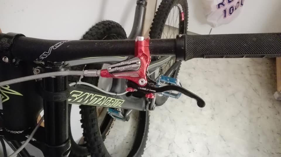 Selger mine Hope V4 bremser som komplett sett med skiver og litt reservedeler. Brukt kun i år, og er i god stand.