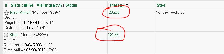 6,7 innlegg/dag i snitt i over 11 år. Imponerende nerding, gratulerer til Baronen  Kanskje på tide med nytt nick? KongKanon? Et eller annet går for lut og kaldt vann her. Enten er det jobben, eller så er det familien...