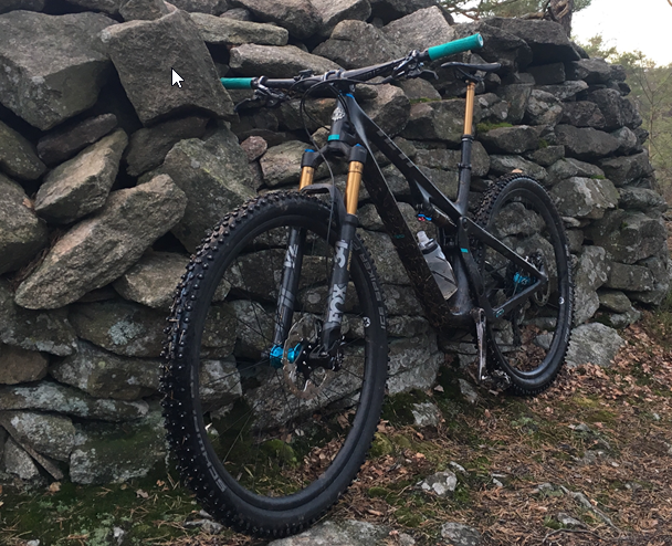 Også har jeg et hjulsett (på bildet) med Industry Nine nav, Sapim CX og Nextie 30/23,4mm felger. Dette har skadede felger, men fungerer med slange og jeg har brukt det slik som et "vinterhjulsett" i 2-3 år...