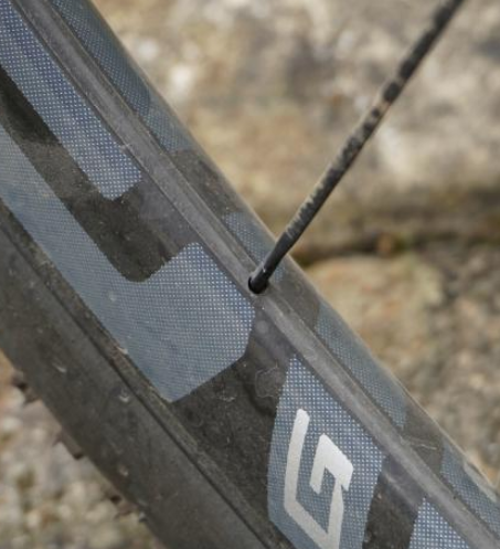 På karbonhjulene mine derimot er det interne nippler, så der er det ingen forsegling ved eikegjennomføringen. Det ser slik ut, selv om jeg klippet dette bildet fra internettet, så er det snakk om samme type konstruksjon.