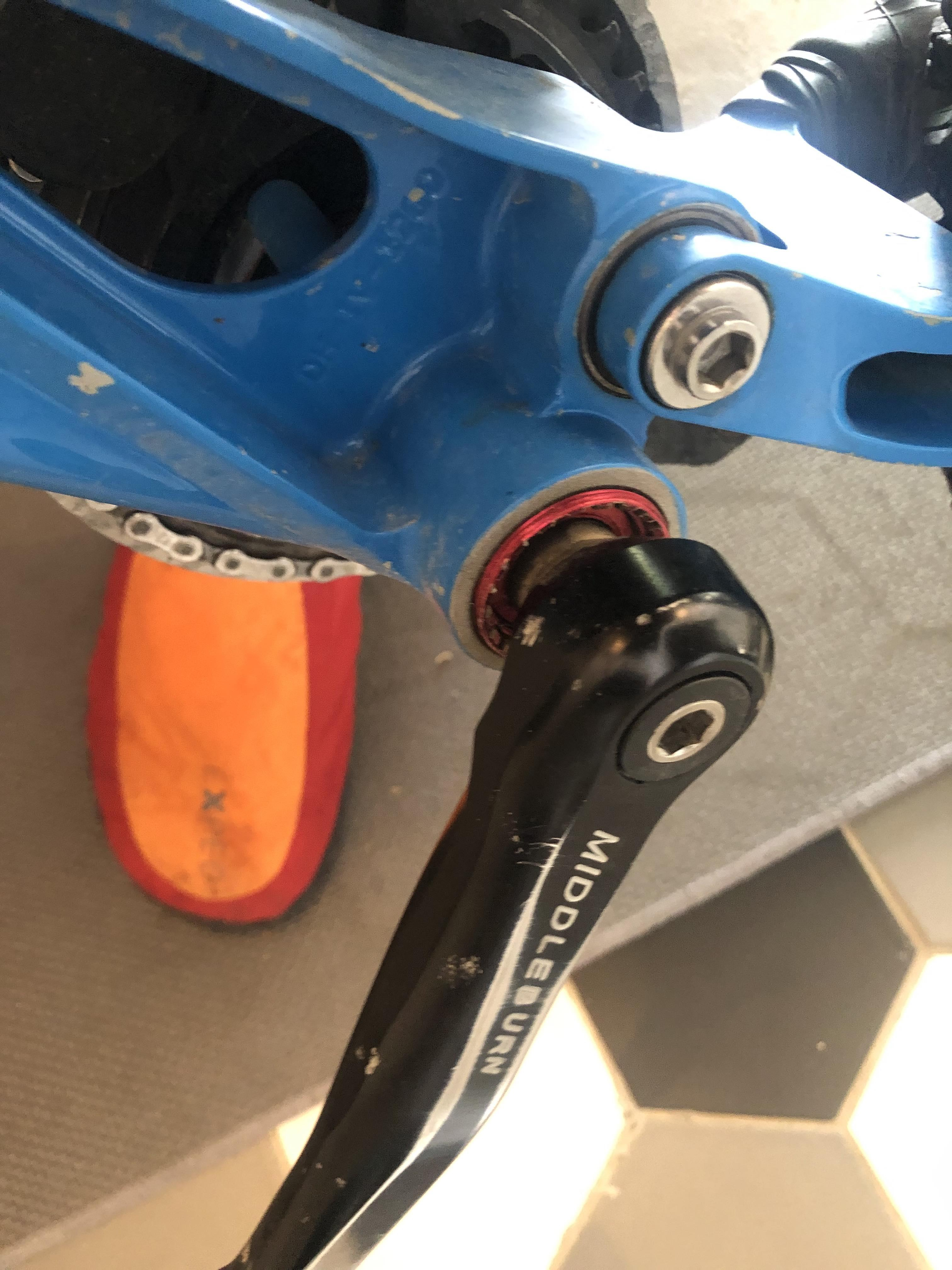 Ah, kødder du? Jeg antok bare at det var en MIddleburn RS8 ut i fra krankarmene, men det viser seg at RS7 kom for ISIS ja... Sykt, trodde det bare ble brukt på bysykler med navgir... Forklarer ihvertfall hvordan det er mulig at sykkelen har den sykeste knirken i kranklagerer jeg noensinne har hørt. Anyway, skrudde ut boltene på endene av krankarmene, men armene sitter mer enn jeg klarer å få av med håndmakt. Er det noen som vet om det kan være noe annet jeg må løsne noe sted?